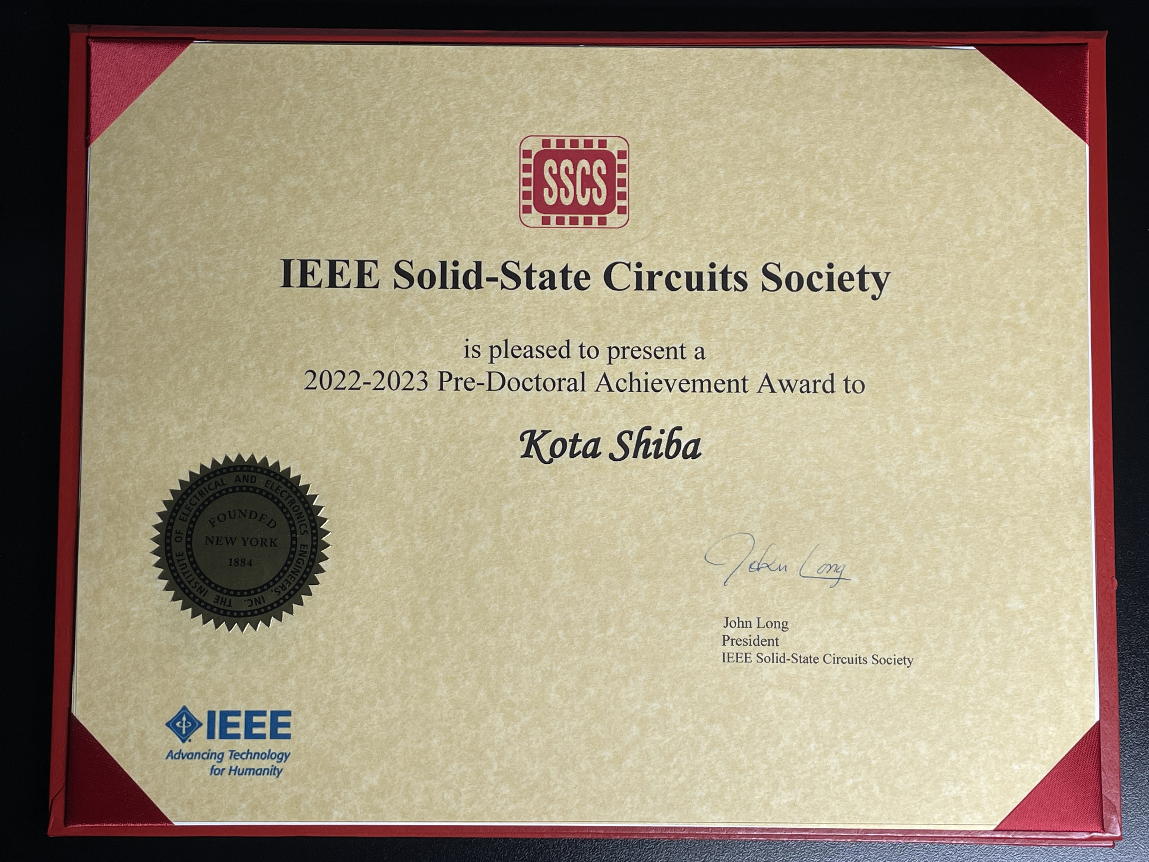| 39 | Kota Shiba; IEEE SSCS Predoctoral Achievement Award, IEEE SSCS, Feb. 2023. | 賞状 |