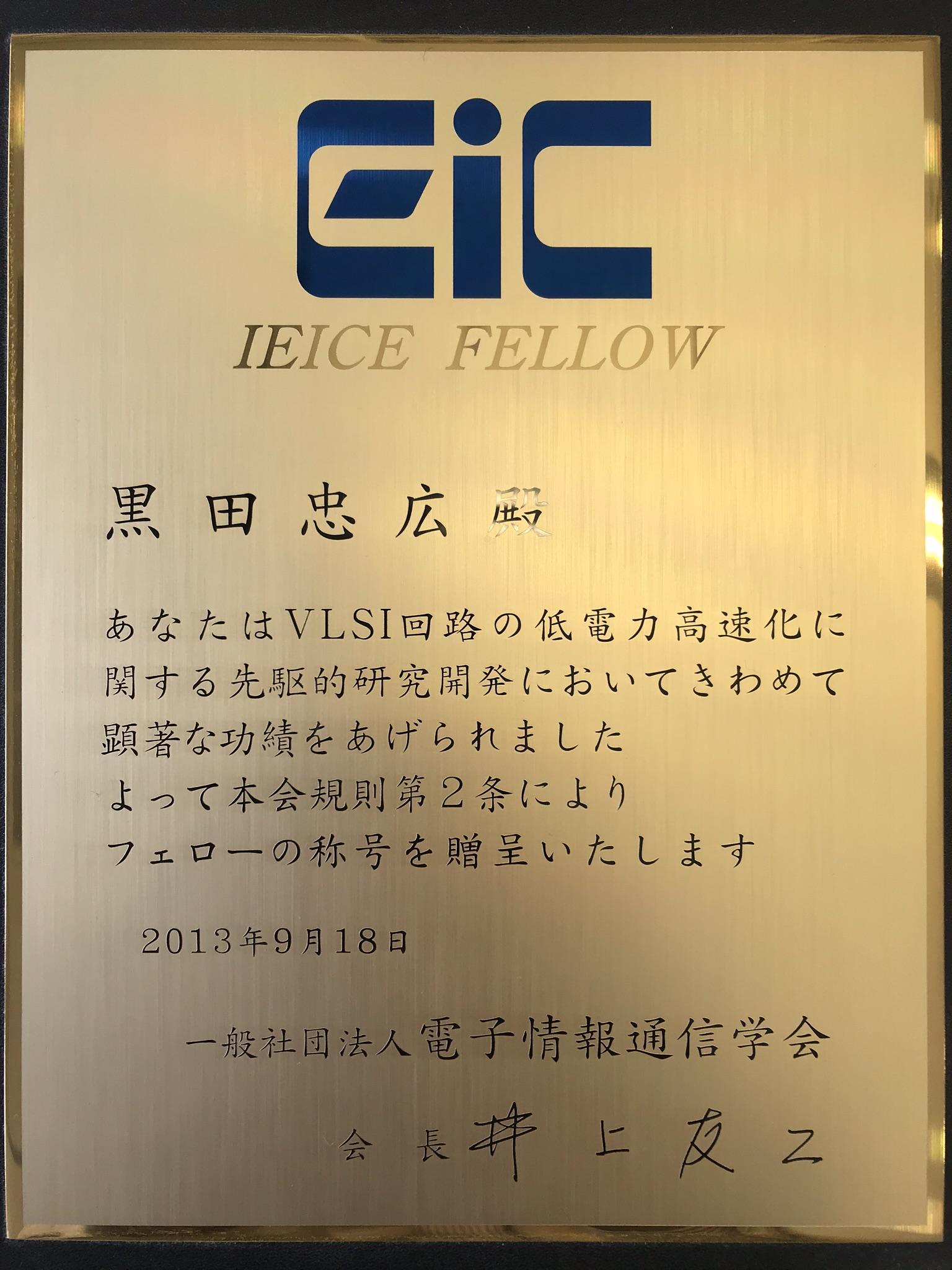 | 27 | 黒田忠広:フェロー称号贈呈, 電子情報通信学会, 2013/09. | 盾 |