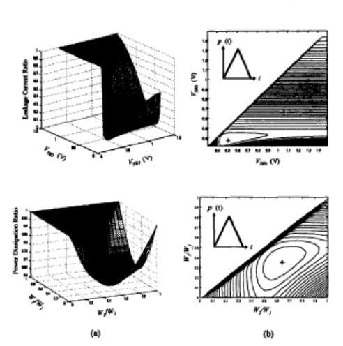 消費電力削減の手法として、複数の電源電圧、閾値電圧、トランジスタのサイズを用いる手法について、理論解析モデルを提案しました。また、将来的な設計について知見を示しました。