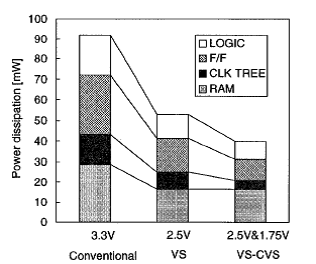 電源電圧可変調整技術とクラスター化電圧スケーリングを用いた低電力回路のトップダウン設計法、およびレベルシフタとフリップフロップの機能を併せ持つ新規回路を提案しました。